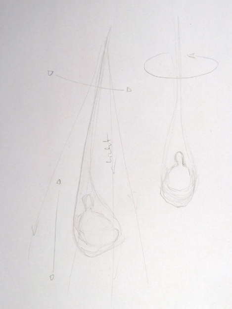 Since our project is an artistic research project and not a media art project, we did not start the development with a clearly defined script nor an intention of expression or statement, but followed an iterative process of conception-investigation-implementation-evaluation-discard/approval. First ideas arose during the proposal writing process and were manifested in basic drawings.